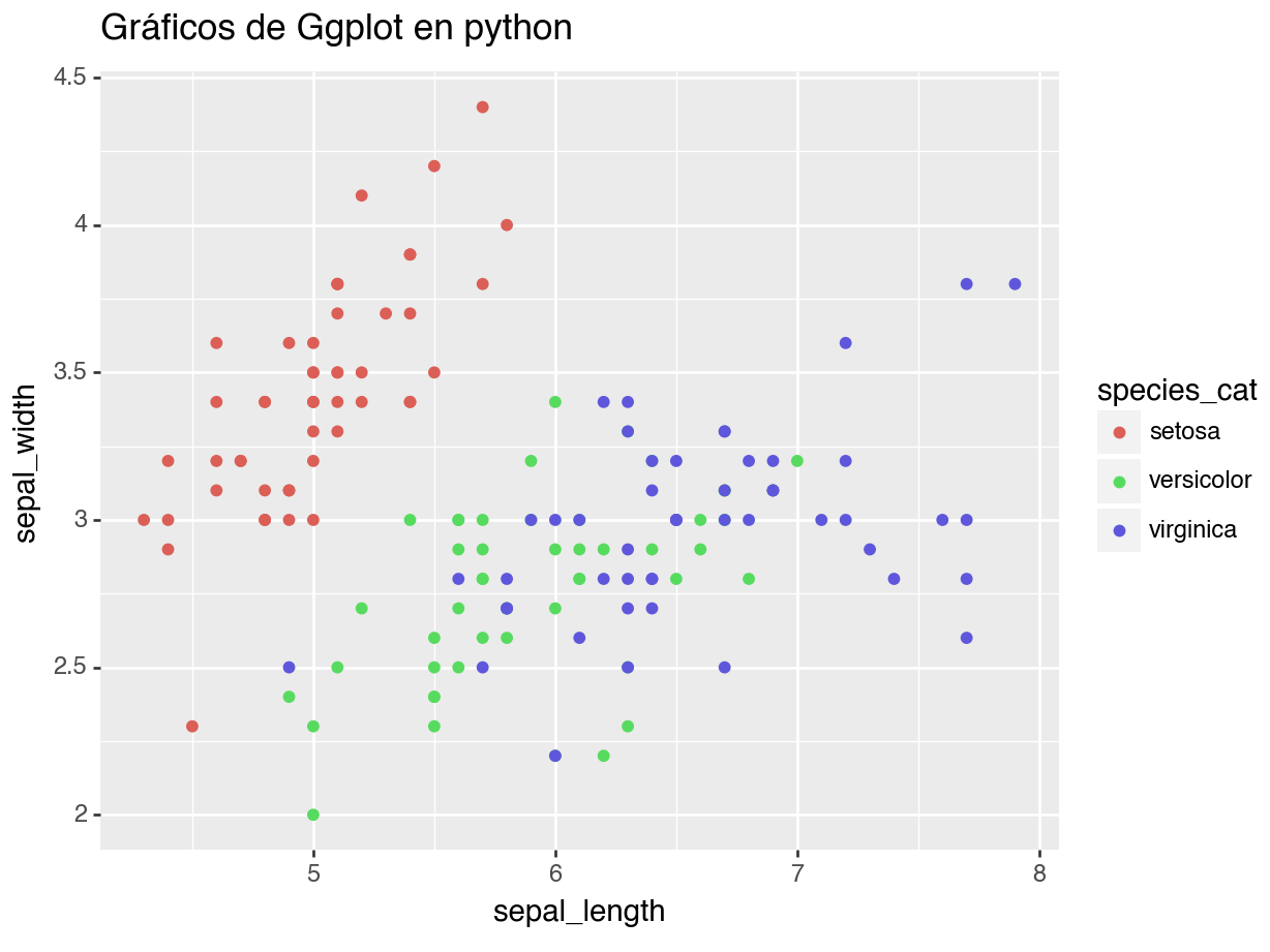 En R se creó una de las mejores librerías para visualizar datos. Su nombre es ggplot. Aunque python tiene sus propias librerías como matplotlib y seaborn, ninguna ha tenido tanto reconocimiento como ggplot en R. Por esta razón, en python se ha desarrollado una librería que simule las ya creadas y aprobadas funciones de gglpot. El nombre de la librería es: plotnine.
