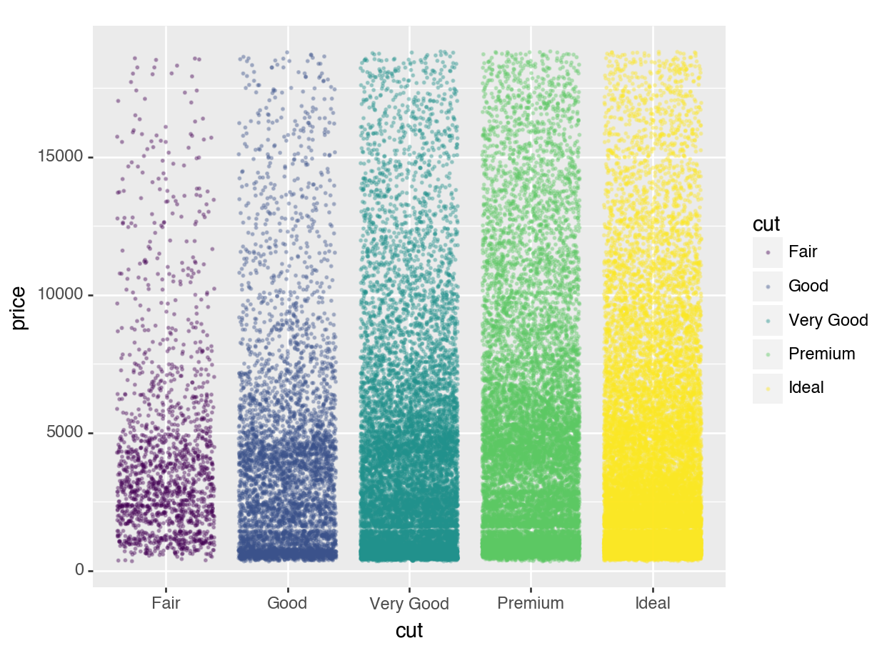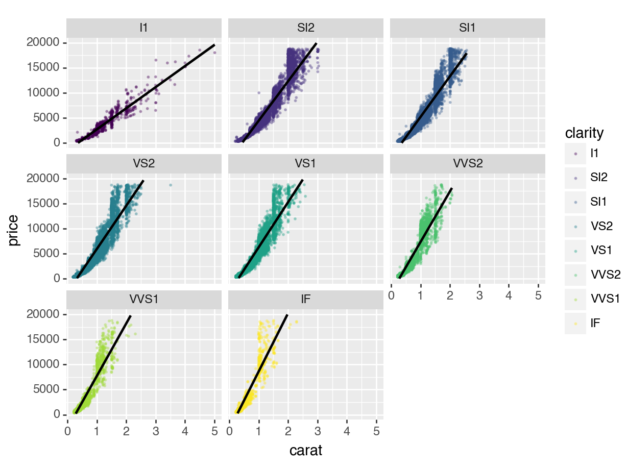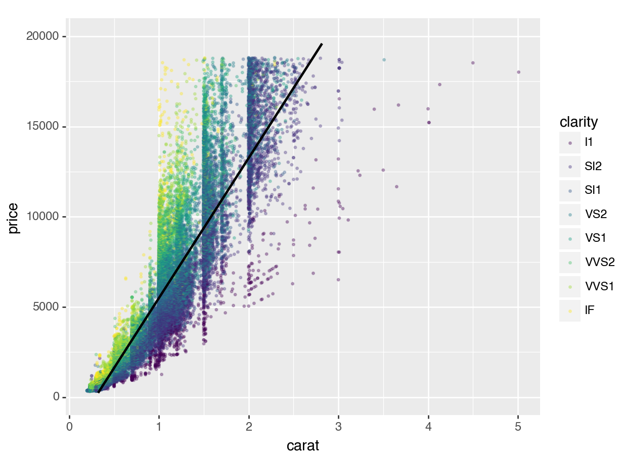 geom_point(aes(color = "clarity"), size = 0.5, alpha = 0.3 ) +