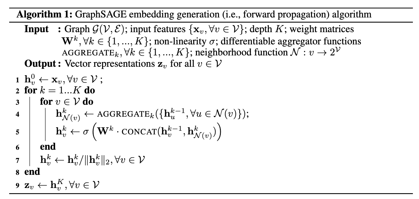 \[\begin{equation} \mathcal{L} = \sum_{w \in \mathcal{W}} - \log \left(\sigma(\mathbf{z}_v^{\top} \mathbf{z}_w) \right) + \sum_{w \sim \mathcal{V} \setminus \mathcal{W}} - \log \left( 1 - \sigma(\mathbf{z}_v^{\top} \mathbf{z}_w) \right), \end{equation}\]