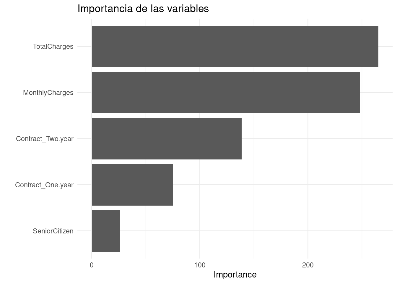 Después de entrenar un modelo, es natural preguntarse qué variables tienen el mayor poder predictivo. Las variables de gran importancia son impulsoras del resultado y sus valores tienen un impacto significativo en los valores del resultado. Por el contrario, las variables con poca importancia pueden omitirse de un modelo, lo que lo hace más simple y rápido de ajustar y predecir.