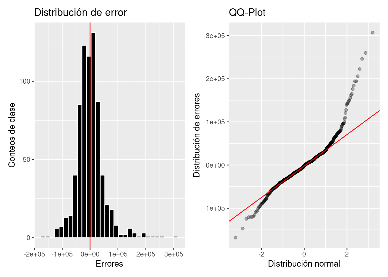 xlab("Distribución normal") + ylab("Distribución de errores") +