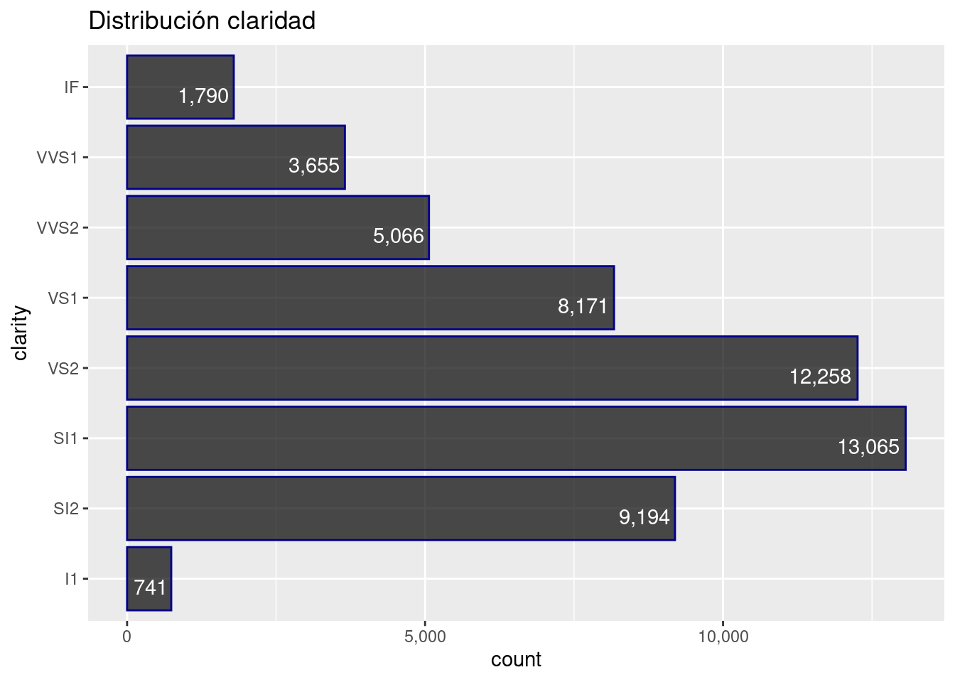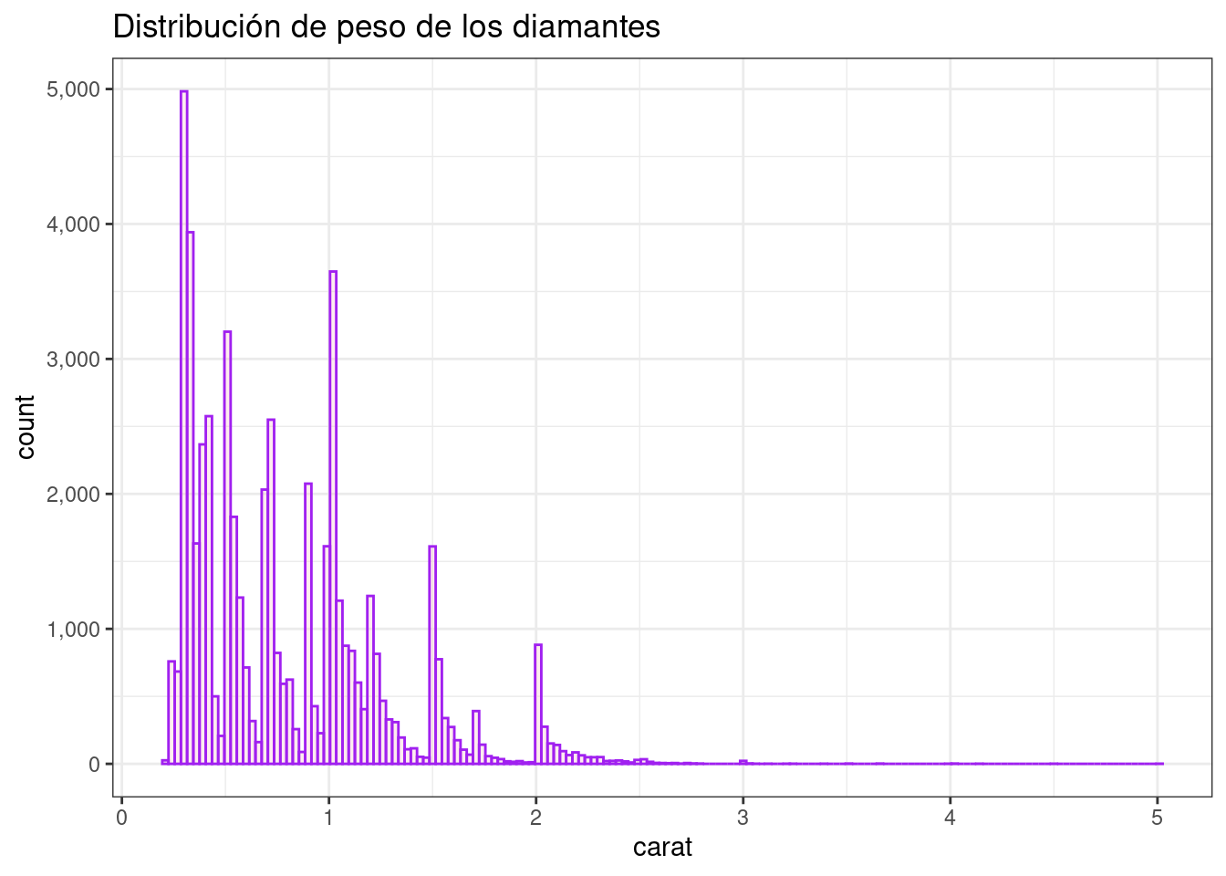 • Barras (geom_bar(), para las variables univariados discretos o nominales)