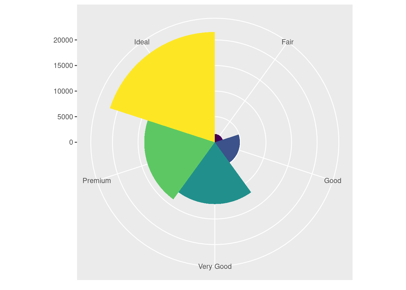 geom_bar( mapping = aes(x = cut, fill = cut), show.legend = F, width = 1)+
