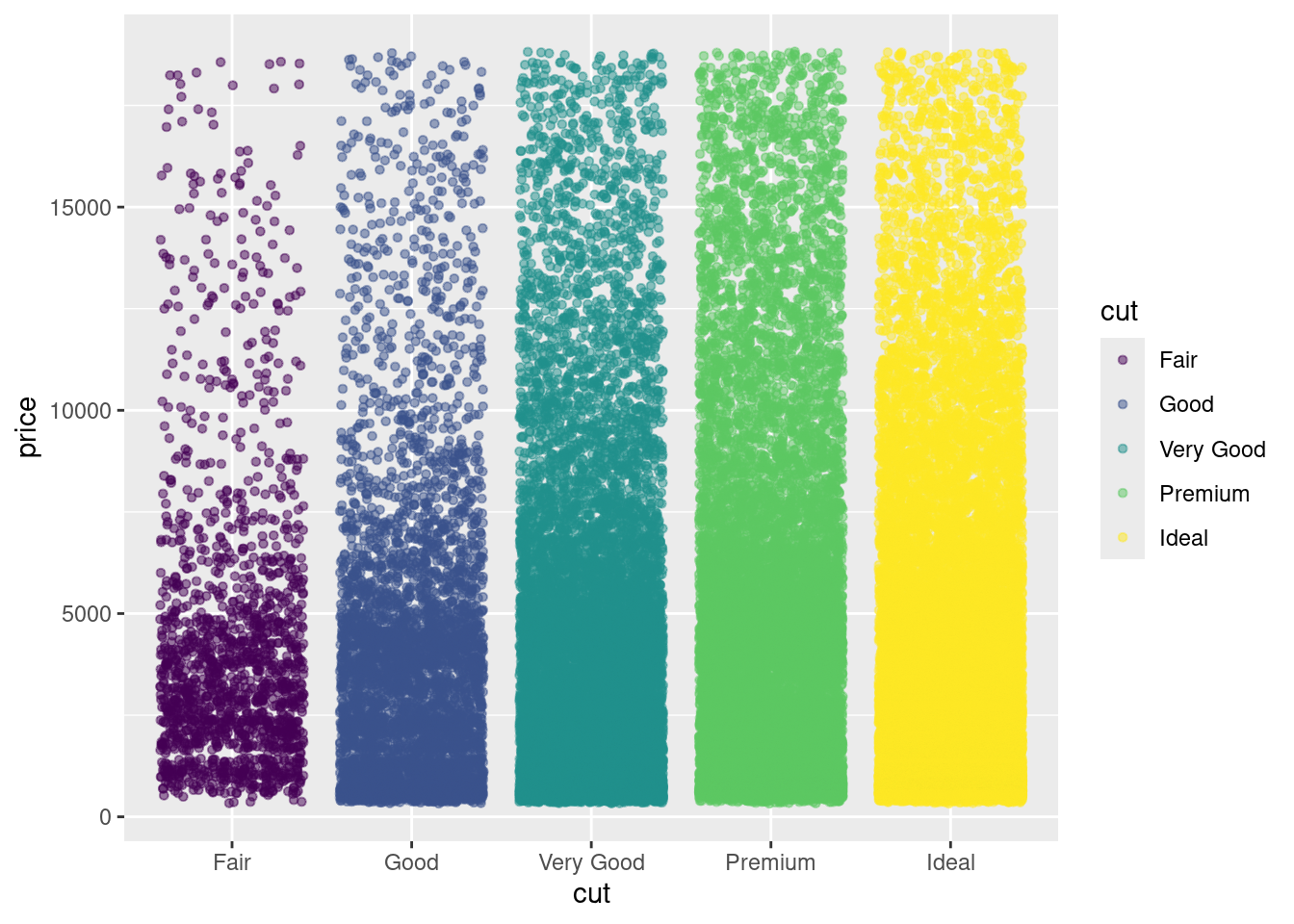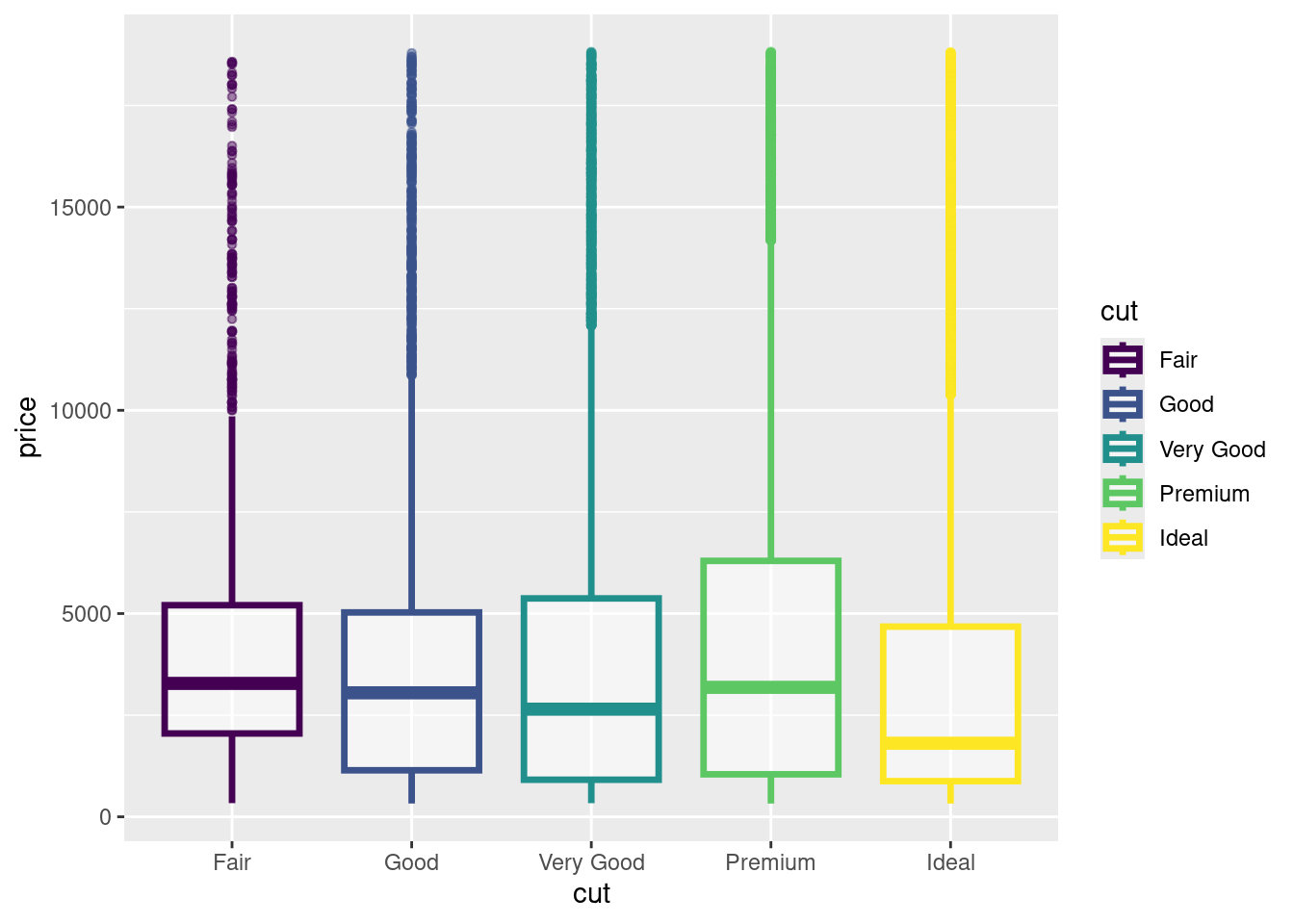 ggplot(aes(y= price,x=cut,color=cut))  +